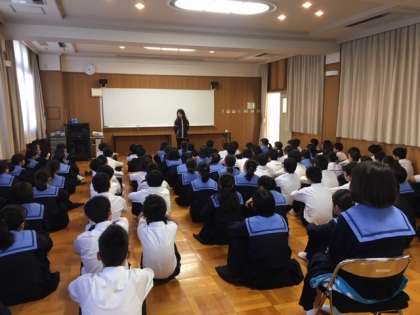 本日は岡本先生からのお話でした。岡本先生が大学受験での経験について、受験で本来の力を発揮するための体調管理、食事の大切さなどをお話いただきました。期末テストが11月27日から行われるので、しっかり準備をして力を発揮してほしいです。