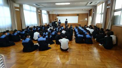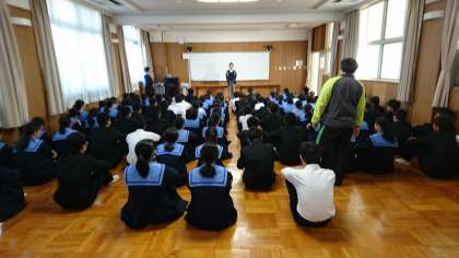 今回は学年副主任の先生より、午後に出発する「職場体験学習あいさつ訪問」について、話がありました。