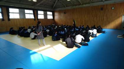 武道場に集合し、諸注意の後、各事業所毎に出発しました。