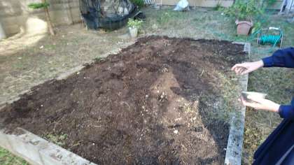 枯れてしまったゴーヤのグリーンカーテンを撤去して畑を耕した後、冬野菜のタマネギの種をまきました。