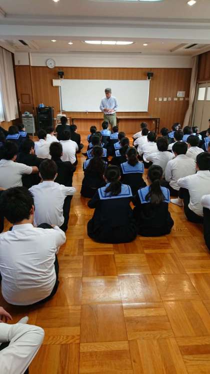 富田先生から通勤時に我れ先に座席を目指す人がお年寄りを押しのけて座っていた、というエピソードが紹介され「周りの人に気を遣える人になっていほしい。」という話しありました。