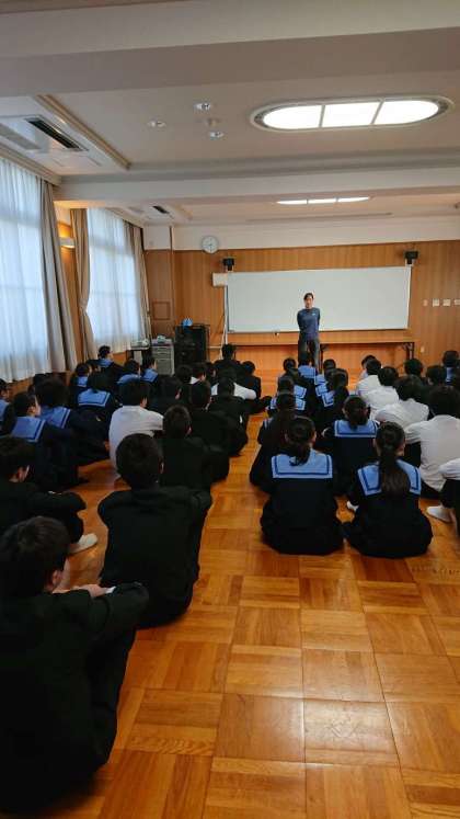 富田杏菜先生から冬の気配が進んだこの時期に、ピッタリのお話がありました。この時期には、インフルエンザの注射をうっておくと、受験の時に困らないという内容でした。それを受けて今できる準備として考えられるはことは何ですかとの問いかけに「食事」「手洗い、うがい」など体調面で気を付けると生徒から答えが出ました。学校で日々の生活を大切にするのは当然ですが、家庭でも睡眠のことや体調管理を気を付けましょうとのことでした。