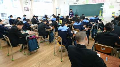 2年生は、文部科学省「道徳教育の抜本的改善・充実に係る支援事業」よりの道徳アンケートと、3学期実施予定の「いのちの学習」(性教育)に向けて「私たちの心の中は?」アンケートと、学期末テストの反省を行いました。