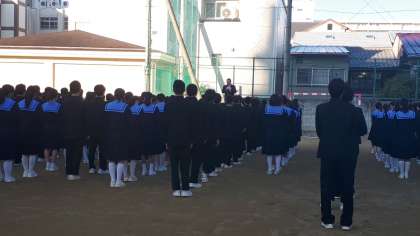 全校集会がありました。昨日、阿倍野区民ホール開催された、「大阪市いじめを考える中学生フォーラム」の報告がありました。本校からも生徒会の2名が当日発表してくれました。新しい大阪市全体のスローガンは、生徒会だよりでお知らせします。いじめは決して他人事ではなく自分事です。また、生活指導からは、防寒着、防寒具の着用ルール等についての連絡がありました。