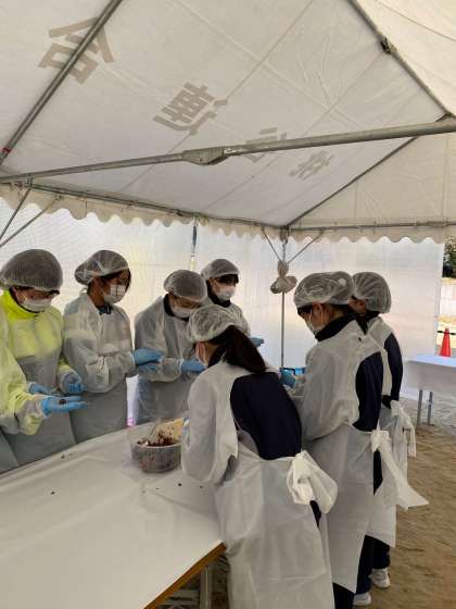 桃谷の時には、本校のボランティア40人が餅をついたり、丸めたりしてお手伝いできました。