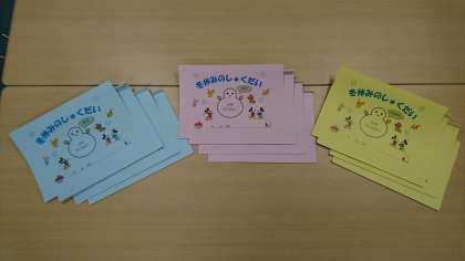 青空学級では一足早く、生徒達にクリスマスプレゼント(冬休みの宿題)が贈られました。