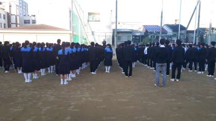 全校集会がありました。校長先生からは、明日から始まる1・2年生の教育懇談や生活指導部からは、カーディガン着用時の注意事項などについての話がありました。お天気は最高でしたが、冷たい朝でした。