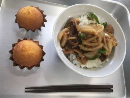 家庭科部でしょうが焼き丼とマドレーヌをつくりました。