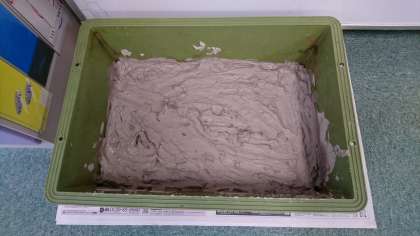 2学期末に美術科から固まった陶土を頂き、それを水に浸した後、冬休み中に調度いい柔らかさまで乾燥させました。