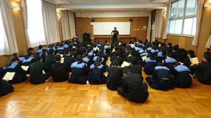 今日5限目、2年生は来週1/23(木)の2学年校外学習について、担当の先生より説明がありました。