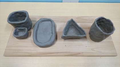 コップやお皿、ペン立て、石けん入れ等を制作しました。