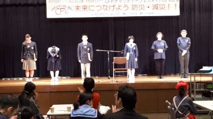 生徒会の生徒が詩の朗読、着ぐるみ(ももっぴぃ)に入ってくれました。