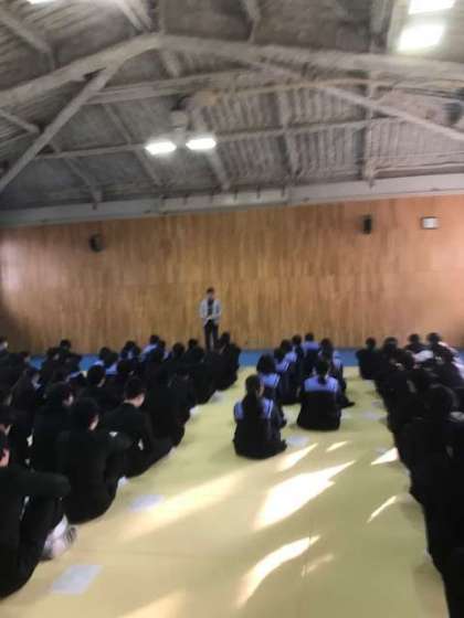 最初に、吉川先生から全般的な注意をし、その後同じ高校ごとに集まり、交通経路の確認などをしました。
