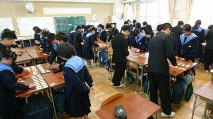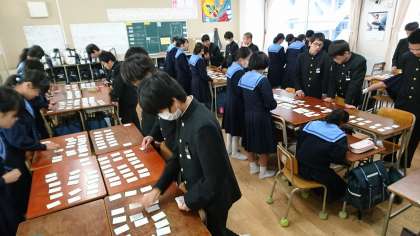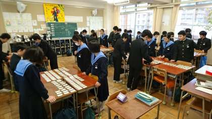 昨日、2年生は国語の時間に、2/6(木)の「学年カルタ大会」に向けいて、各クラスで百人一首の練習をしました。