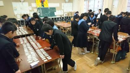 2年生は、2/6(木)の「学年カルタ大会」に向けいて、各クラスで百人一首の班分けと、その後は練習をしました。