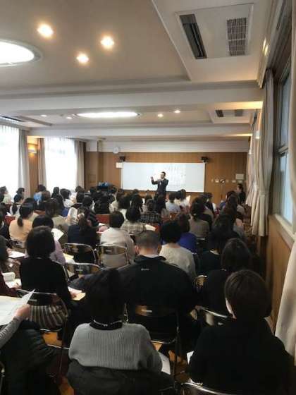 学校長より教育方針をお話ししたあと、各担当から、今後の日程、入学にあたっての準備物、給食などについて説明しました。