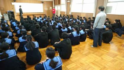 今日は学年主任の先生より、午後からの「学年かるた大会」や、3学期中に予定されている「学年球技大会」等についての話でした。