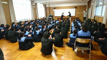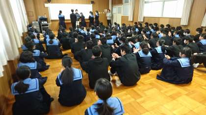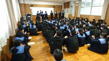 その後、委員長の代表より、昨日の生徒専門委員会で決まった2〜3月の学年目標「気を引き締めて、最高学年になる準備をしよう。」が発表されました。