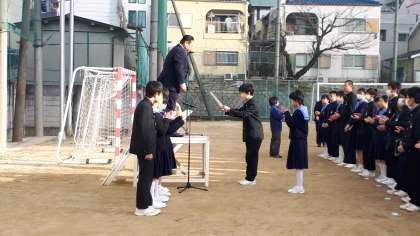 今日は全校集会がありました。3年生も私学等の入試も終わり、公立入試となります。今週木曜日には公立特別入試があります。合格した3年生、おめでとうございます。でもまだ入試が残っている生徒がたくさんいるので、周りの人達を大切にしてあげてください。また、水泳、バドミントンの表彰も行いました。