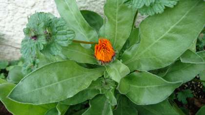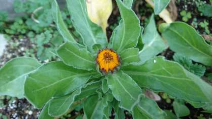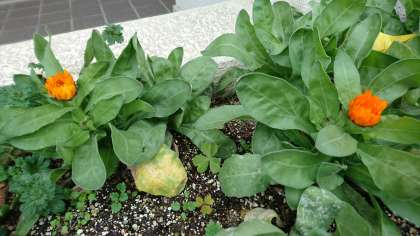 昨年9月に中央区緑化事業の一環として、生徒会と園芸部が一緒に種まきし、園芸部が中庭の花壇に移植したキンセンカが、やっと咲き始めました。
