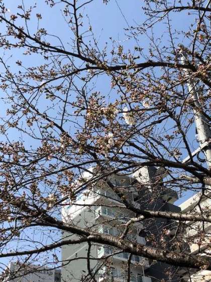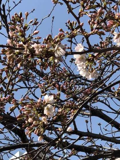 正門横の桜が咲きました。