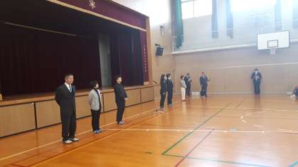 令和元年度修了式がありました。風が通り、間隔をとり、マスクをしたままで、1年生が9時より、2年生が11時よりそれぞれ体育館で行いました。各学年代表に修了証が手渡され、学校長式辞、春休みの生活指導やコロナ感染症対策、そして、今年度末で異動される方の離任式を行いました。明日から春季休業です。家庭学習、感染症対策をしっかり行ってくださいね。ご苦労様でした。