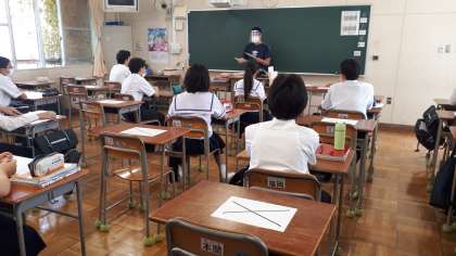 6月1日、学校再開です。午前と午後に分かれての分散登校で各3時間授業を行い、全校生徒が登校しました。午前の最後と午後の始まりには、パンと牛乳を中心とした給食も始まりました。10日には、「ぶどうーゼリー」が追加されます。今週来週と分散登校、そして、15日からの通常再開に向けて学習とともに、手洗い、うがい等、気を緩めずに感染症拡大防止にも努めてください。