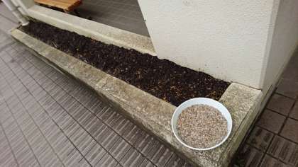 今日の午後、青空学級の作業学習として、中庭の花壇にヒマワリの種まきをしました。