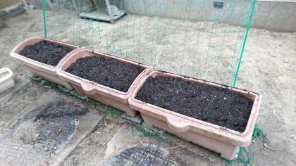 今日、青空学級の作業学習として、裏庭のプランターに純白ゴーヤーの種まきをしました。