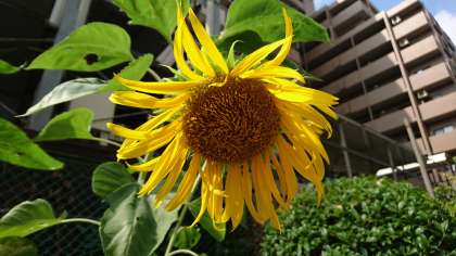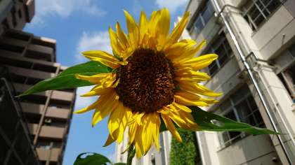 開花の遅れていたヒマワリが、まるでこの日を待ち詫びていたように、やっと満開となりました。