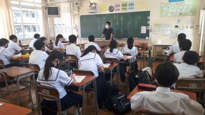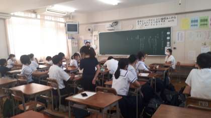 9月の目標などを話し合いました。上町中をさらに良くするよう生徒会活動も頑張っています。