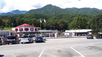 バスは、長野県に入りました。天気は暑いぐらいです。恵那峡、駒ヶ岳SAで休憩し、梓川に向かっています。