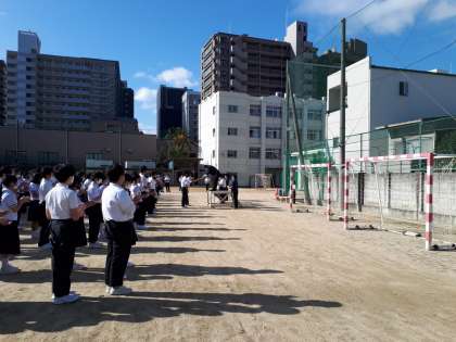 また、サッカー部が大阪市秋季大会第3位となりました。その表彰も行いました。おめでとう。本当によく頑張ったと思います。