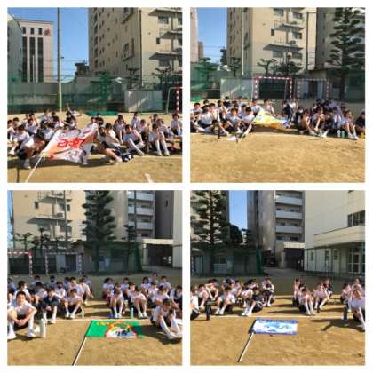 この日の体育大会のために、2度の練習を経るだけでなく、各クラスで10月からクラスカラーを決めたり、メンバーを決めたり、学級旗の作成も行い取り組んで来ました。
