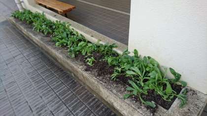 9月、中央区緑化事業の一環で、生徒会と園芸部が一緒に種まきをしたキンセンカが、順調に育ちました。