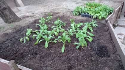そのため、大量に残ったキンセンカの苗を、園芸部の生徒が中庭の花壇やテラス付近に移植しました。