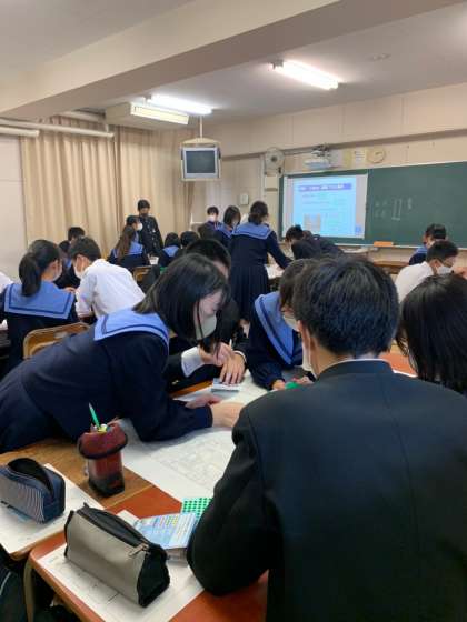 2年生は、昨日の5、6時間目に防災教育として「地震・津波について」の映像を視聴、「DIG(図上避難経路確認)」をしました。