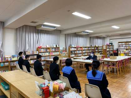 今日は図書室で面接の練習を行いました。