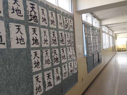 火曜日からの3年生の教育懇談にともない、文化活動の展示の部、作品展が多目的室およびパソコン室前廊下、各学年の教室前廊下で開催されています。懇談時に是非お子様とともに見学していただければと思います。写真は、書道、短歌、俳句・川柳の作品です。