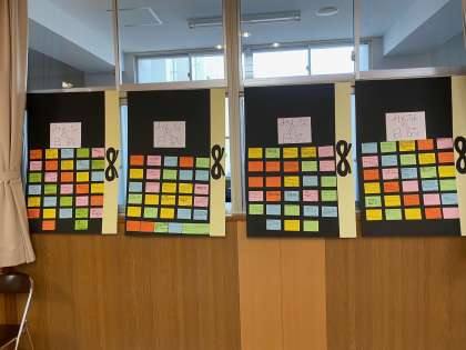 また、在校生のみなさんが書いてくれたメッセージカードを玄関に掲示しています