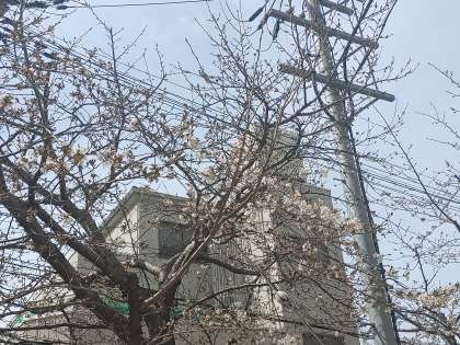 玄関の桜の花のつぼみが日一日と開花しています、今日は、朝は冷え込んでいましたが、気温がぐんぐん上がり、開花も増えてきました。昨年は、コロナ対応もあり、新1年生を除いて学校の桜の開花を見ることができませんでしたが、今年は、少しずつ開花する桜を楽しむことができます。