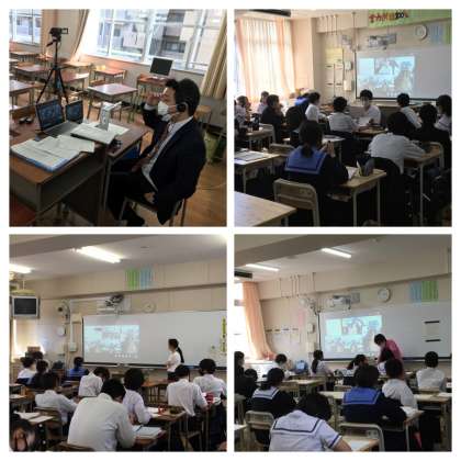 今日、2年生では、教室間での双方向授業が実現しました。他の教室の様子見ながら、質問にも答えるなど、一歩一歩ですが着実に進んでいます。