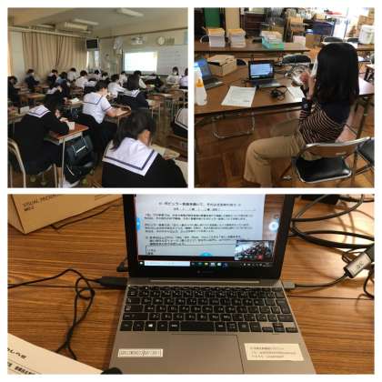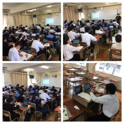 各教科の特性に応じ工夫を凝らしたオンライン授業形式での授業実践を行えています。各授業、生徒が真剣に課題に取り組んでいます。