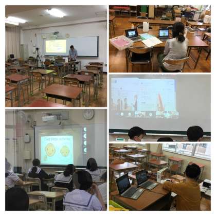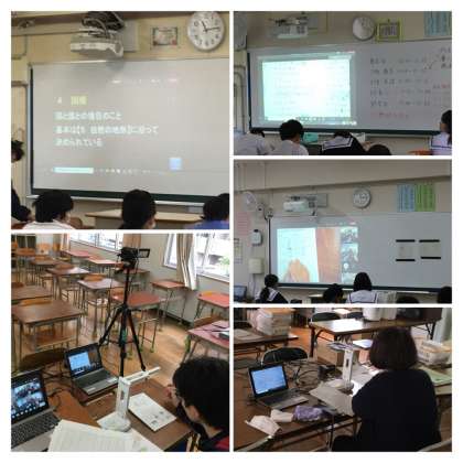 各教科の特性に応じ工夫を凝らしたオンライン授業形式での授業実践を行えています。各授業、生徒が真剣に課題に取り組んでいます。