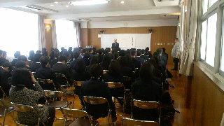 4月12日(日)の午前10時から3月に卒業した62期生の同窓会総会・入会式を本校多目的室で実施しました。卒業して1か月も経っていないのに、進学先の制服を着ると何となく少し大人に見えました。式の後、旧3年生の先生方と近況の報告や感想などを話していました。
