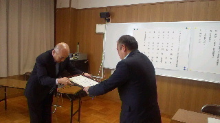 議事終了後、笹田校長より板原前会長に感謝状が贈られました。