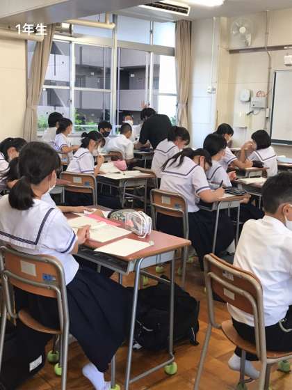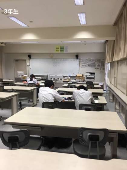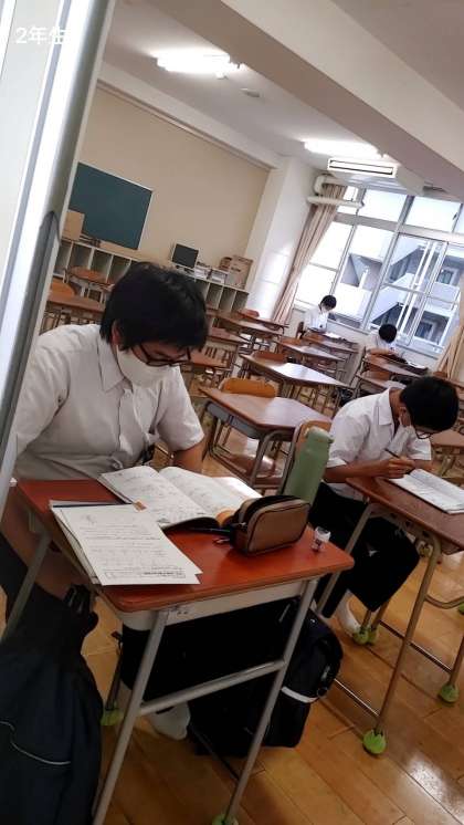 2年生、3年生は勉強に集中しており2年生は学習支援の先生に質問していました。