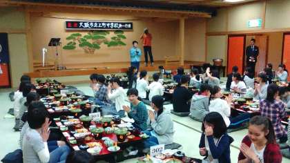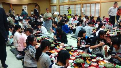 忙しかった1日の最後は、みんなでの夕食です。食事係のいただきますのかけ声の後、元気よく食事が始まりました。どの子もモリモリ食べていました。今日は、あとゆっくりくつろいで、就寝です。