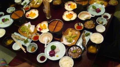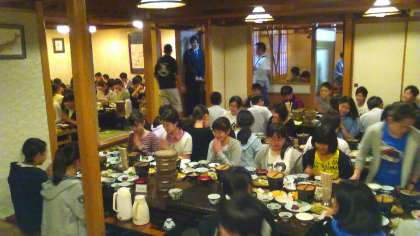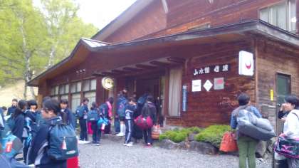 乗鞍の宿舎に到着し、修学旅行最後の夕食をとりました。お昼に、ほっとステイ先で沢山ご馳走していただき、お腹がいっぱい気味の人もいましたが、楽しそうに食事をしていました。