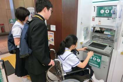 実際に車椅子を使って校区内のコンビニや銀行、地下鉄の構内、